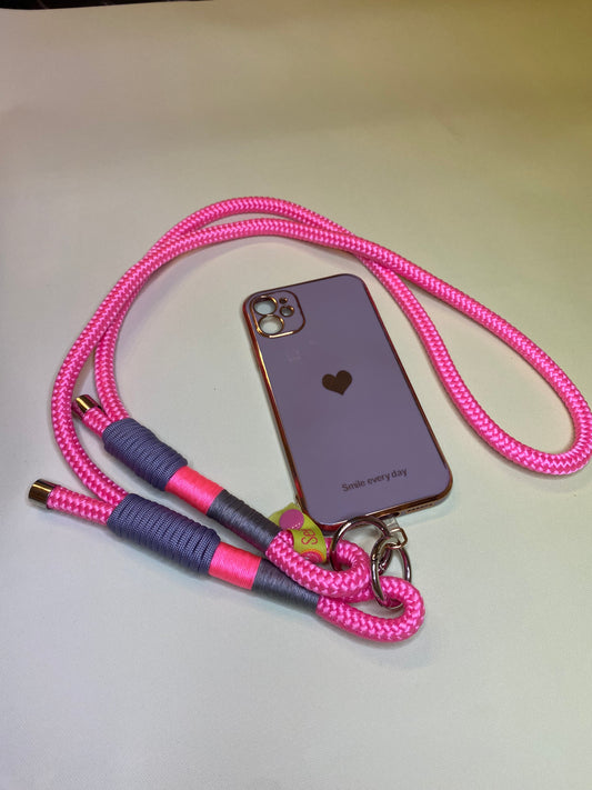 Handykette Pink loves grey aus Paracord & Segeltau