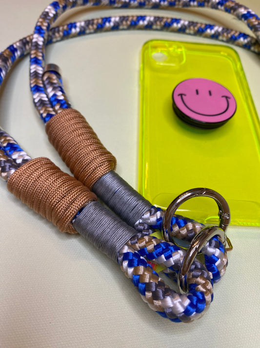 Handykette Blauer Mustermix aus Paracord & Segeltau