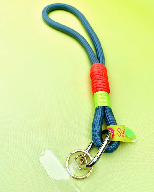 Handycharm und Schlüsselanhänger Petrol im Neonfieber aus Paracord & Segeltau