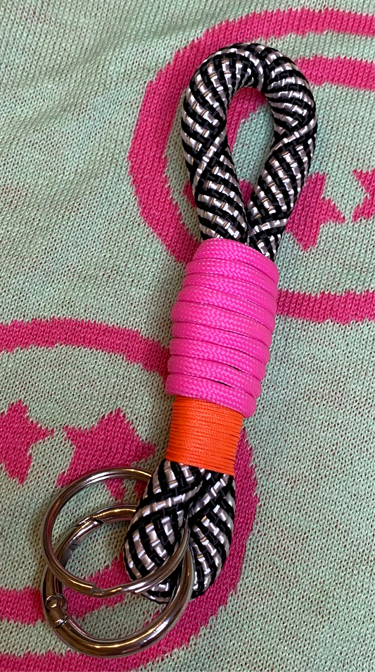 Schlüsselanhänger schwarz-weißer Mustermix mit Pink aus Paracord & Segeltau