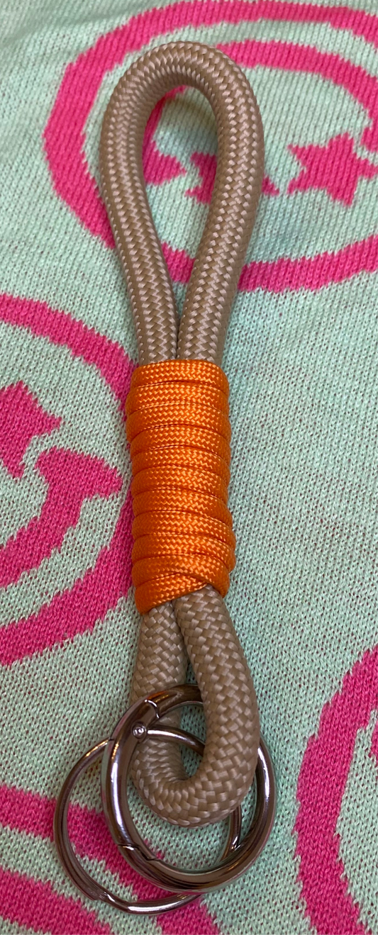 Schlüsselanhänger Beige-Orange aus Paracord & Segeltau