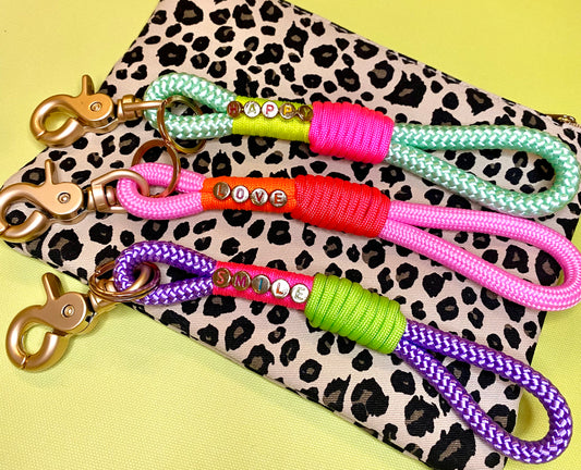 Schlüsselanhänger mit Spruch in bunten Frühlingsfarben aus Paracord & Tauseil