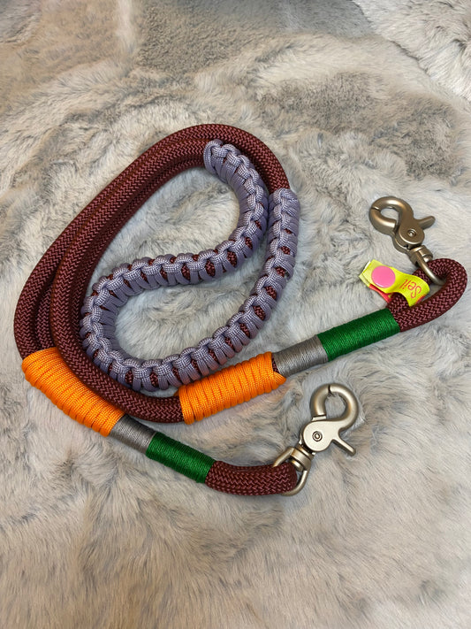 Taschengurt kurz Aubergine trifft Orange aus Paracord & Segeltau