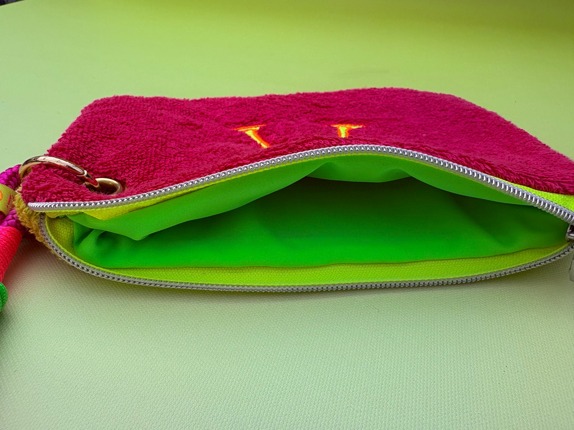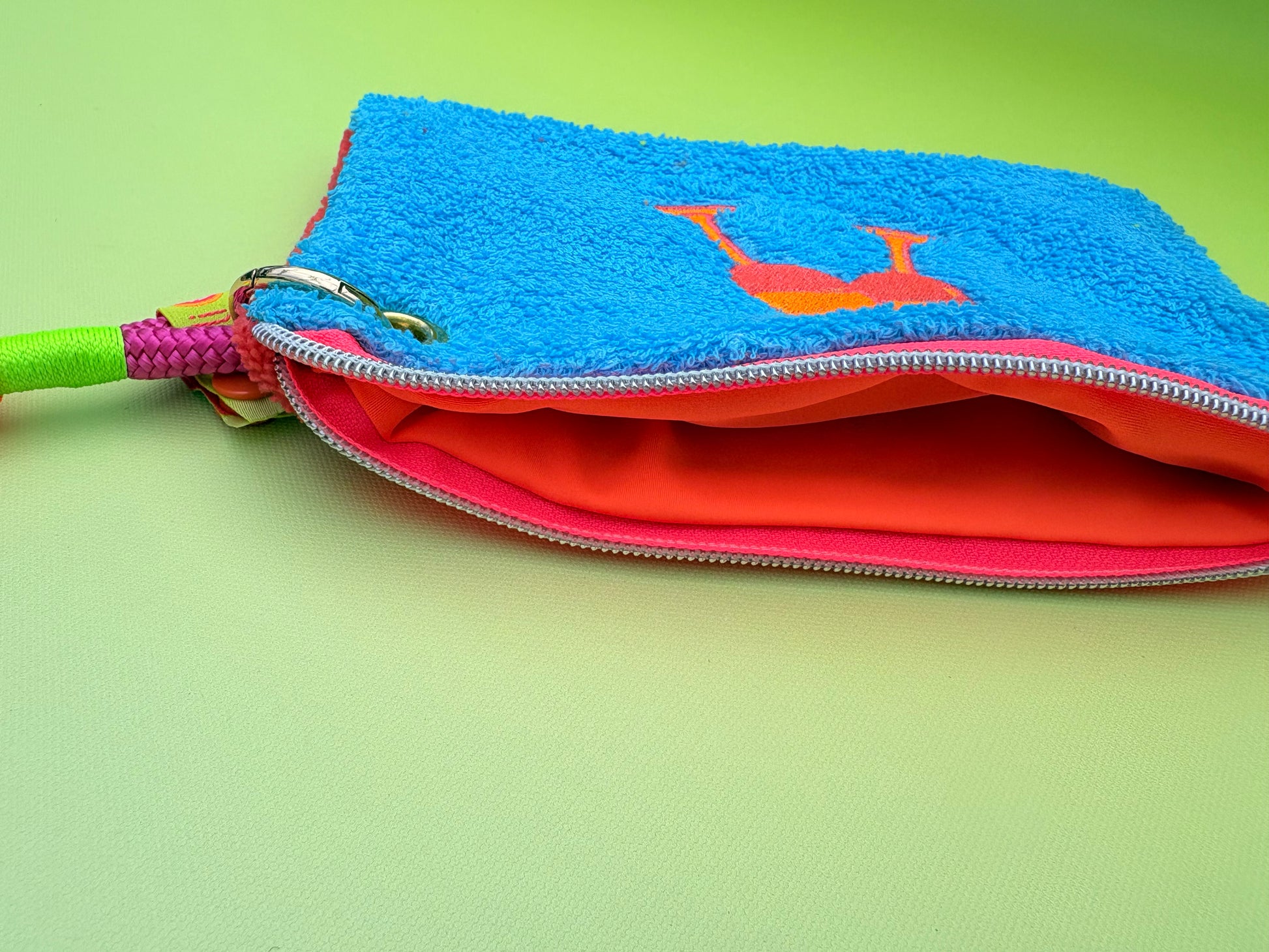 Der Innenteil aus wasserabweisendem Neonstoff, perfekt auch für nasse Badesachen.