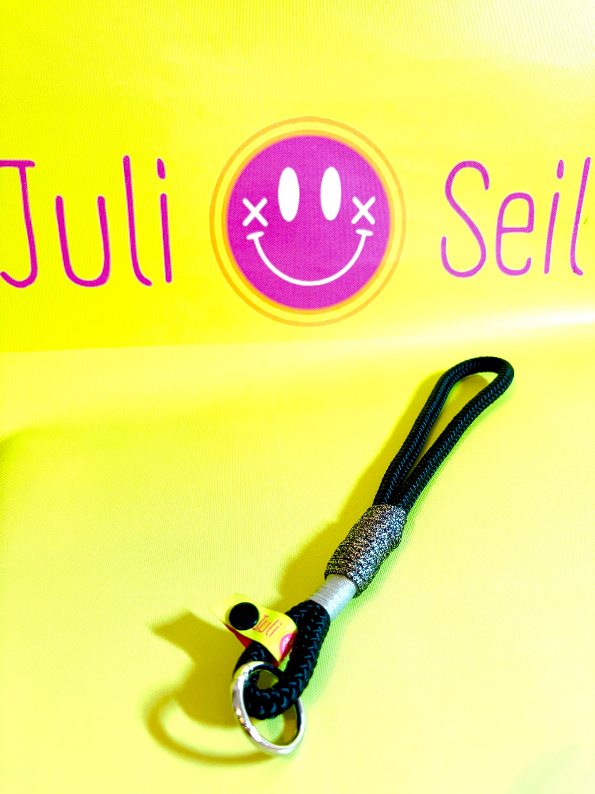 Handycharm und Schlüsselanhänger Schwarz im Glitzerfieber aus Segeltau & Paracord